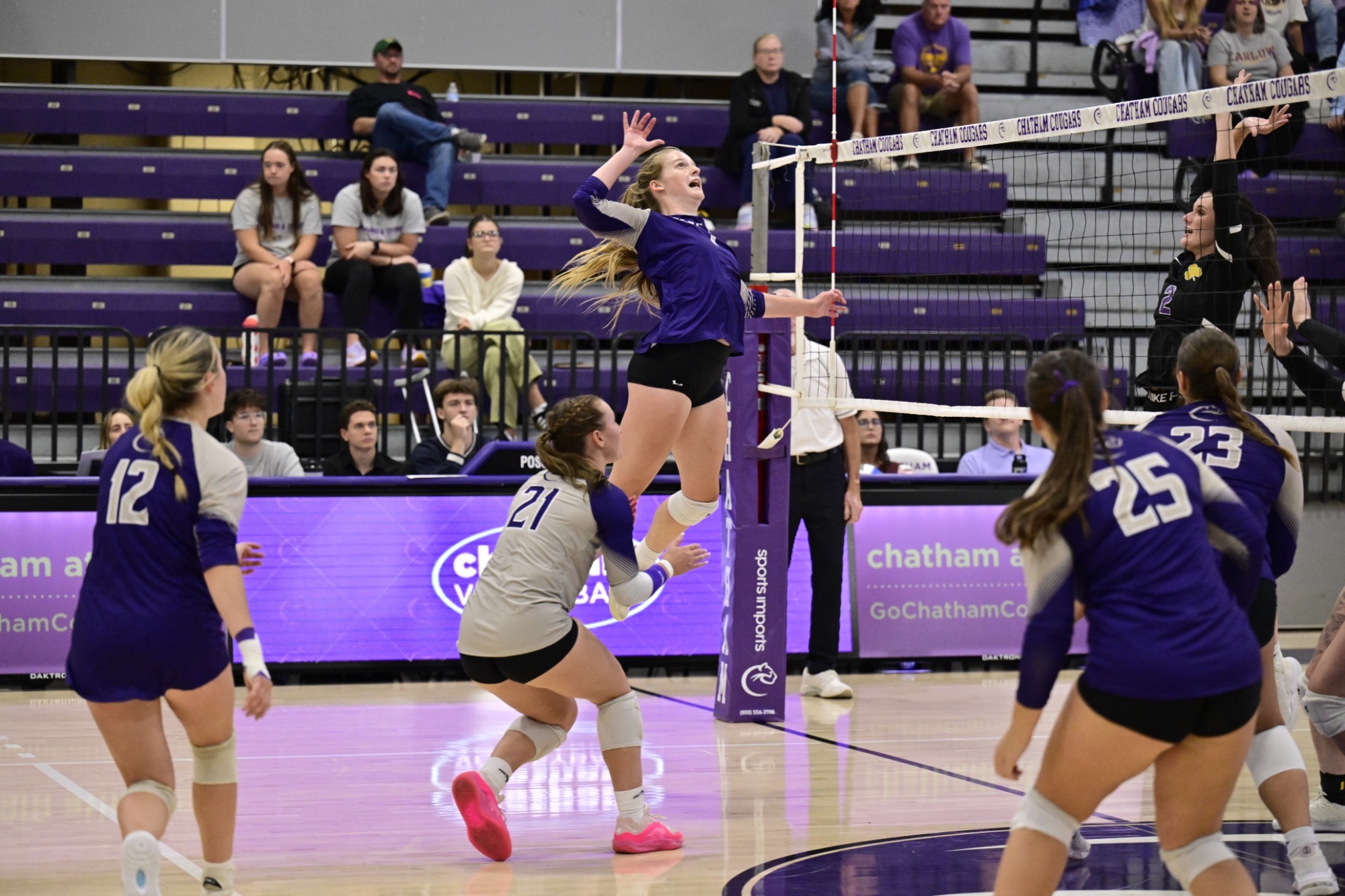 In the opening match of the 2014 season, the Cougars faced off against Geneva, losing 3-0. Chatham dropped three consecutive sets 25-8, 25-8, and 25-13. The Cougars saw positive play from multiple players in the opening match, including three digs, two kills, and an ace from sophomore outside hitter