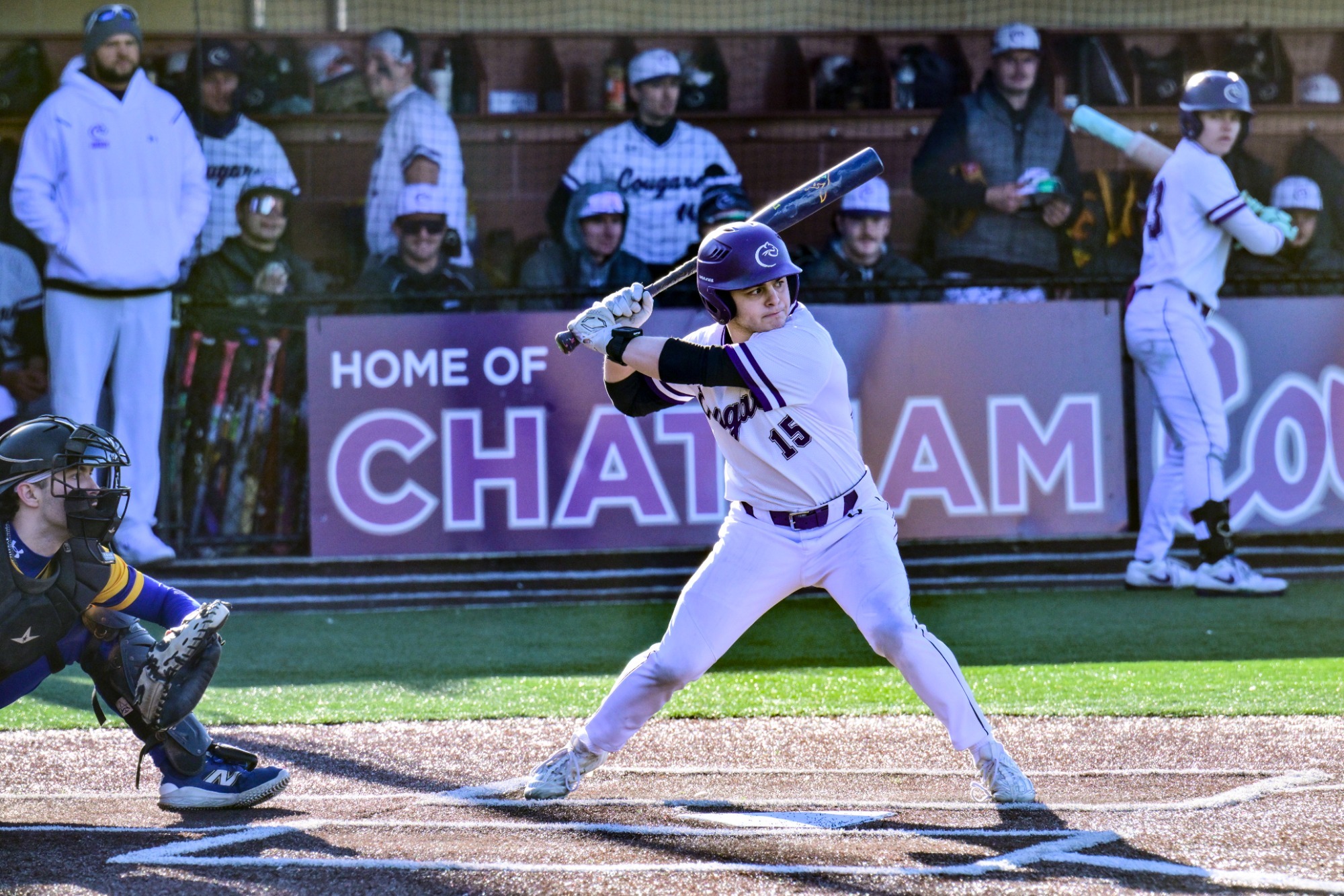 The baseball team will practice and play all home games at West Field.  The field is the center-piece of William W. Knight Memorial Park which just received near-$6 million worth of renovations. Chatham will play on the $2 million top-of-the-line baseball field. 116,000 square feet of slit-film turf was installed. The synthetic turf results in a year-round play system that is not dependent on the weather. Other highlights from the renovations include: modernized dugouts and locker rooms; a large concession stand; two rest rooms; a press box; and a grandstand behind home plate that seats 800. The Cougars will have a locker room for exclusive use by the team.